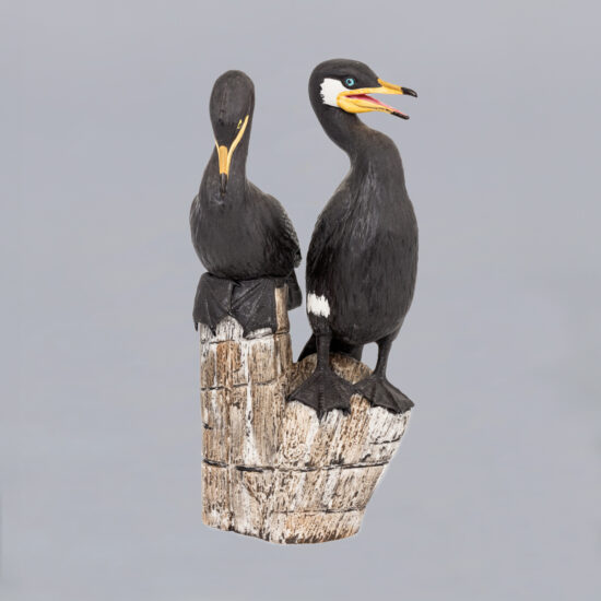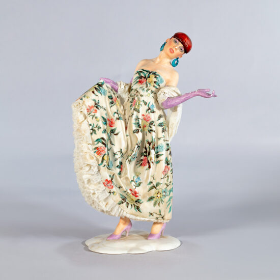 Designed by Danny Osborne, made of porcelain clay, cotton net lace dipped in porcelain clay is applied by hand to Oisin’s coat. This figurine is entirely hand painted. When Danny and Geraldine Osborne went to the Arctic for a year in 1989 they took their three young children Oisin, Orla and Tempy with them. They lived with the Inuit hunters in one of the most isolated communities in the world, nearly a thousand miles north of the Arctic Circle. The family travelled many hundreds of miles over the frozen sea ice on their dog-sledge. During the long winter, Danny made these models ‘Orla Floe Hopping’ and ‘Oisin and Friend’ of his children. These pieces are limited editions handcrafted by Danny and Irish Dresden as part of our long-standing collaboration. Artist: Danny Osborne
